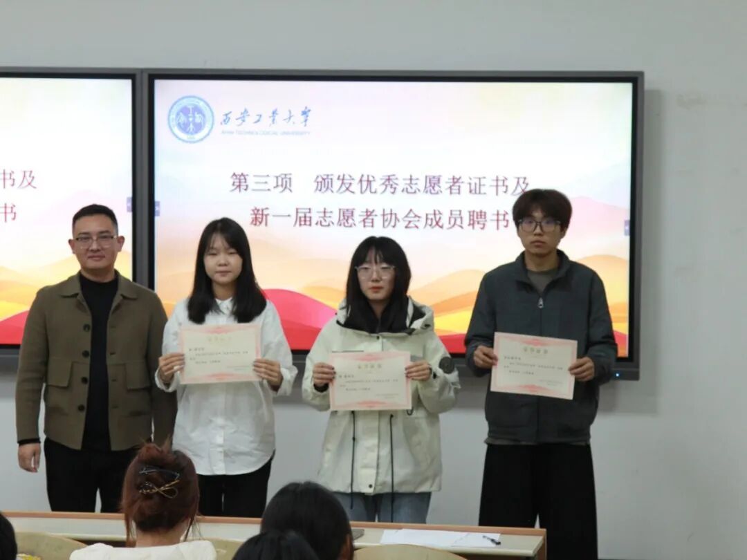 会上,第六届校友志愿者协会会长苏世秋作本届工作总结,系统回顾了过去一年协会在活动组织、团队建设、志愿服务等方面取得的成果,剖析了工作中存在的不足,并提出了具体改进建议,为协会后续发展提供了清晰的思路。协会指导老师杨莎宣读了上一届优秀成员名单及新一届学生干部名单。校友总会办公室黄彦军为受表彰的学生颁发了荣誉证书。