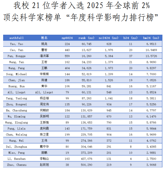 我校教师入选2025年度 “全球高被引科学家”