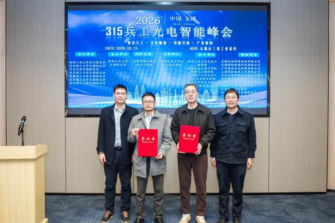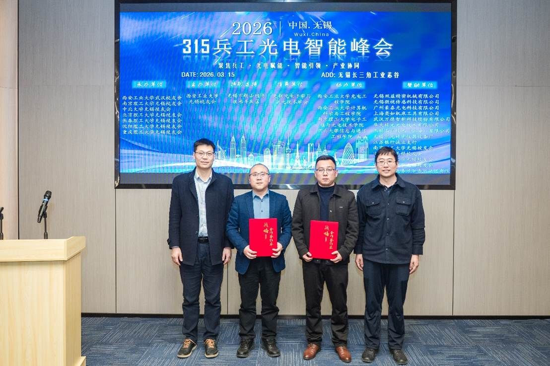 3月15日,我校无锡校友会联合成立“兵工七子”校友联盟并在长三角工业芯谷组织召开光电智能峰会。大会旨在促进企业技术对接、展示最新科研成果、强化校地产业协同,共同探讨中国光电材料、智能装备产业的高质量发展路径。来自“兵工七子”高校的专家学者、校友企业家代表以及地方政府、特邀嘉宾等近80人齐聚一堂,围绕光电材料、智能装备等前沿技术展开深入交流。
