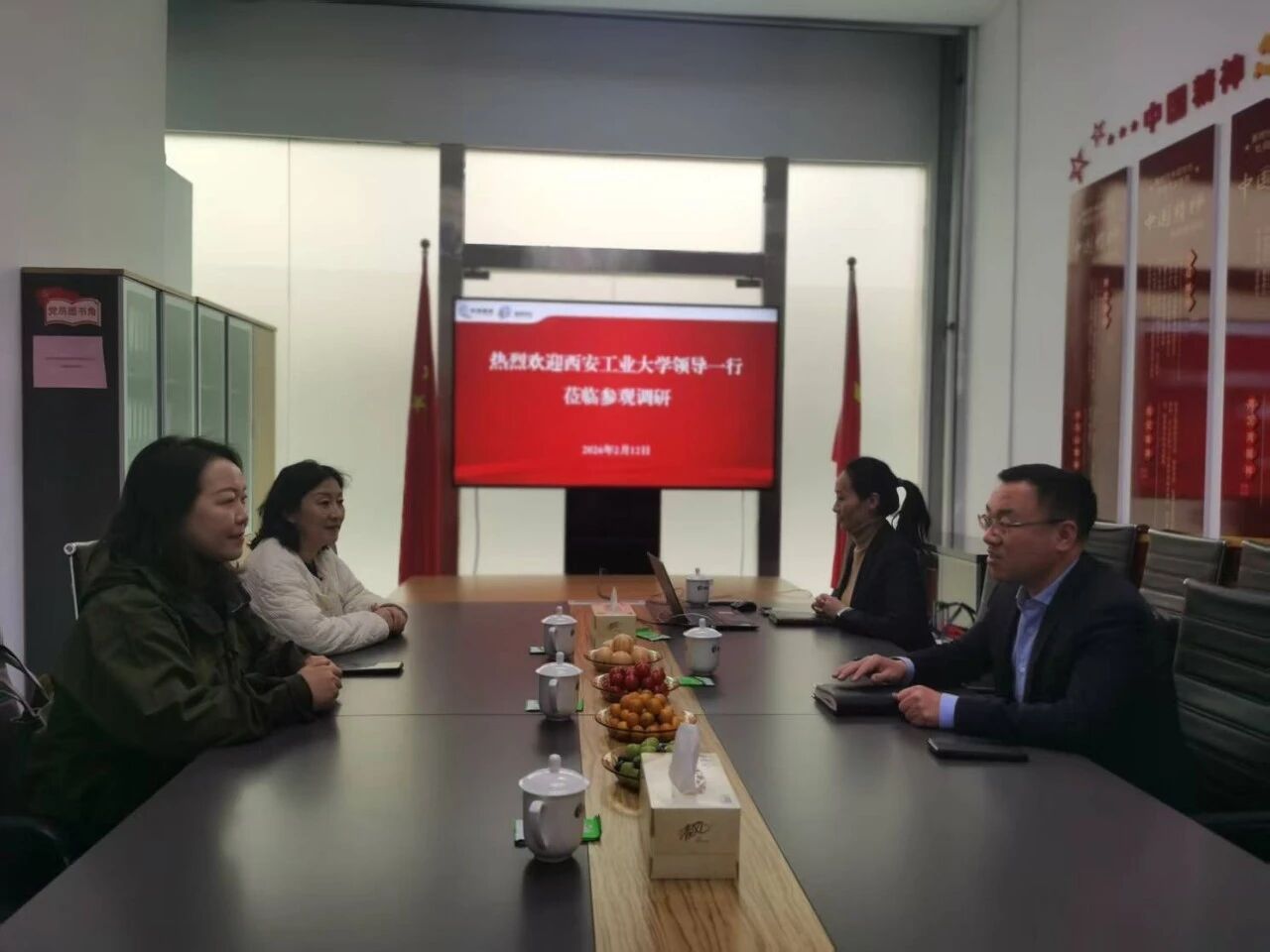 新春佳节临近,为传递母校关怀,深化交流合作,2月12日,外联处(校友总会办公室)处长杨琳、副处长周黎萍及相关工作人员,先后走访了我校00级校友白刃任总经理的西安国际陆港物业管理有限责任公司、97级校友吴玉平任总经理的西安戌午电子科技有限公司,与校友座谈交流,共话情谊、共商发展。