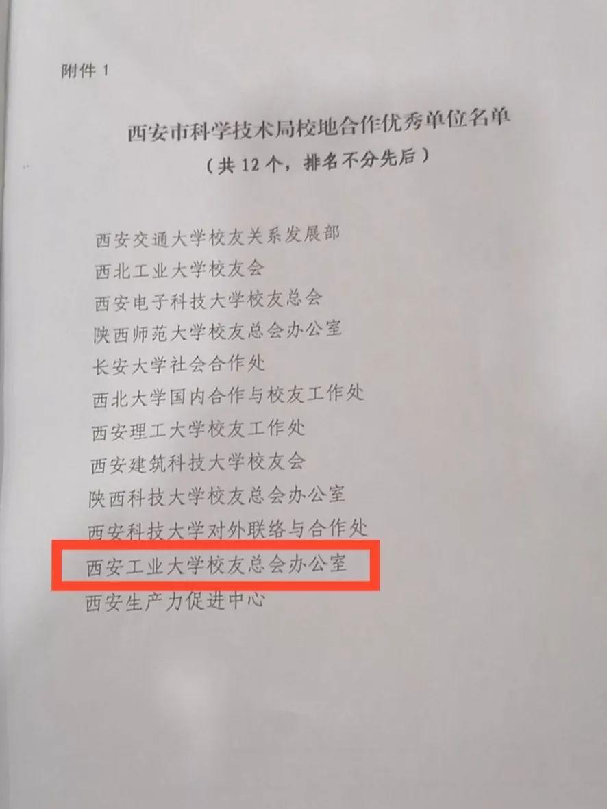 近日,西安市科学技术局召开2019年度驻市高校校友工作总结会。西安市科技局局长李志军出席会议,会上总结了2019年校友工作服务地方经济建设取得的成果,各高校交流了工作经验。会上还对2019年校地合作优秀单位和优秀个人进行了表彰。我校校友总会办公室被西安市科技局评为校地合作优秀单位。