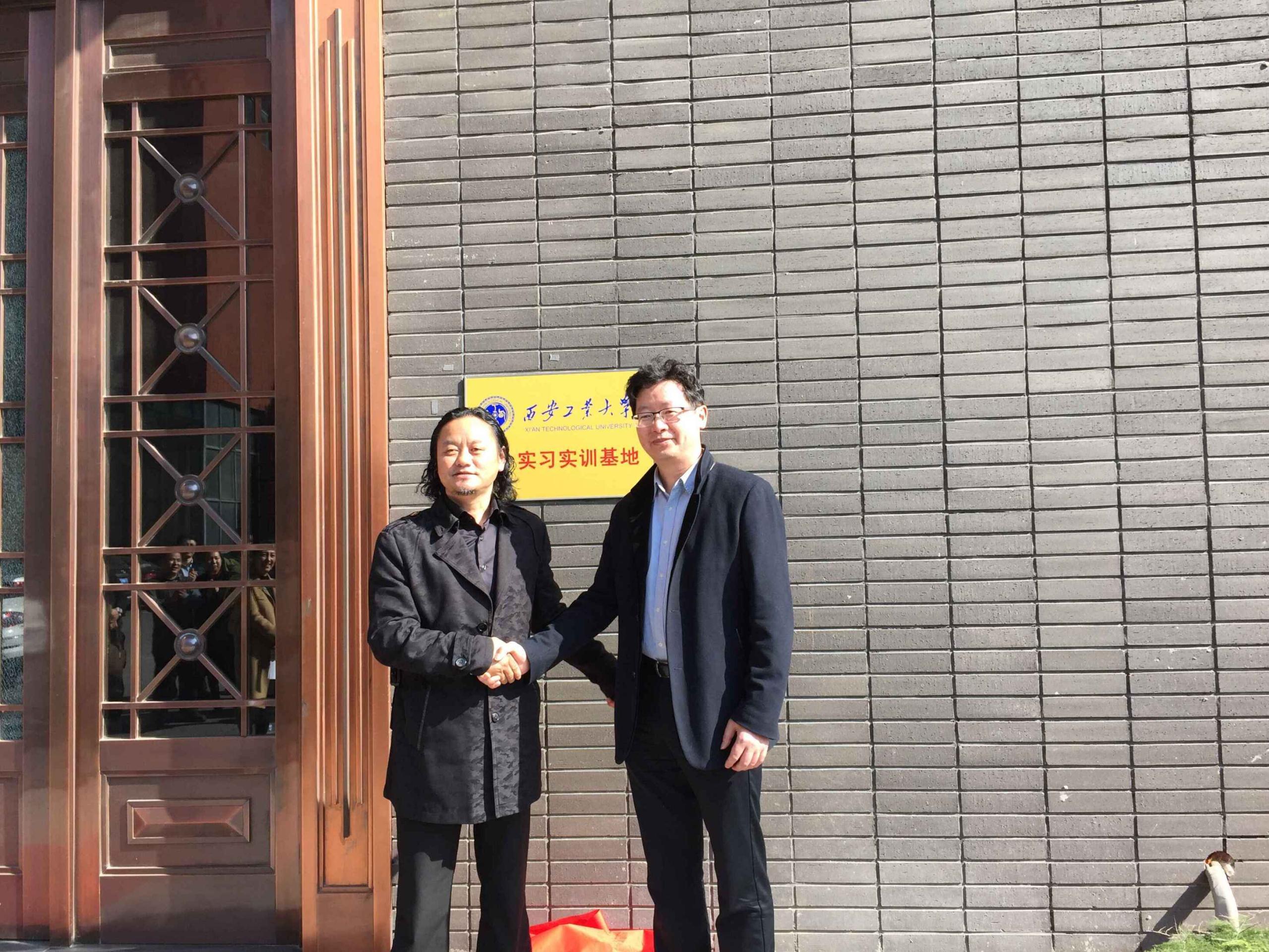 大会结束后,西安工业大学与上海浦宇铜艺装饰品有限公司举行了“西安工业大学实习实训基地”揭牌仪式,刘卫国校长与李西岳总经理共同揭牌。