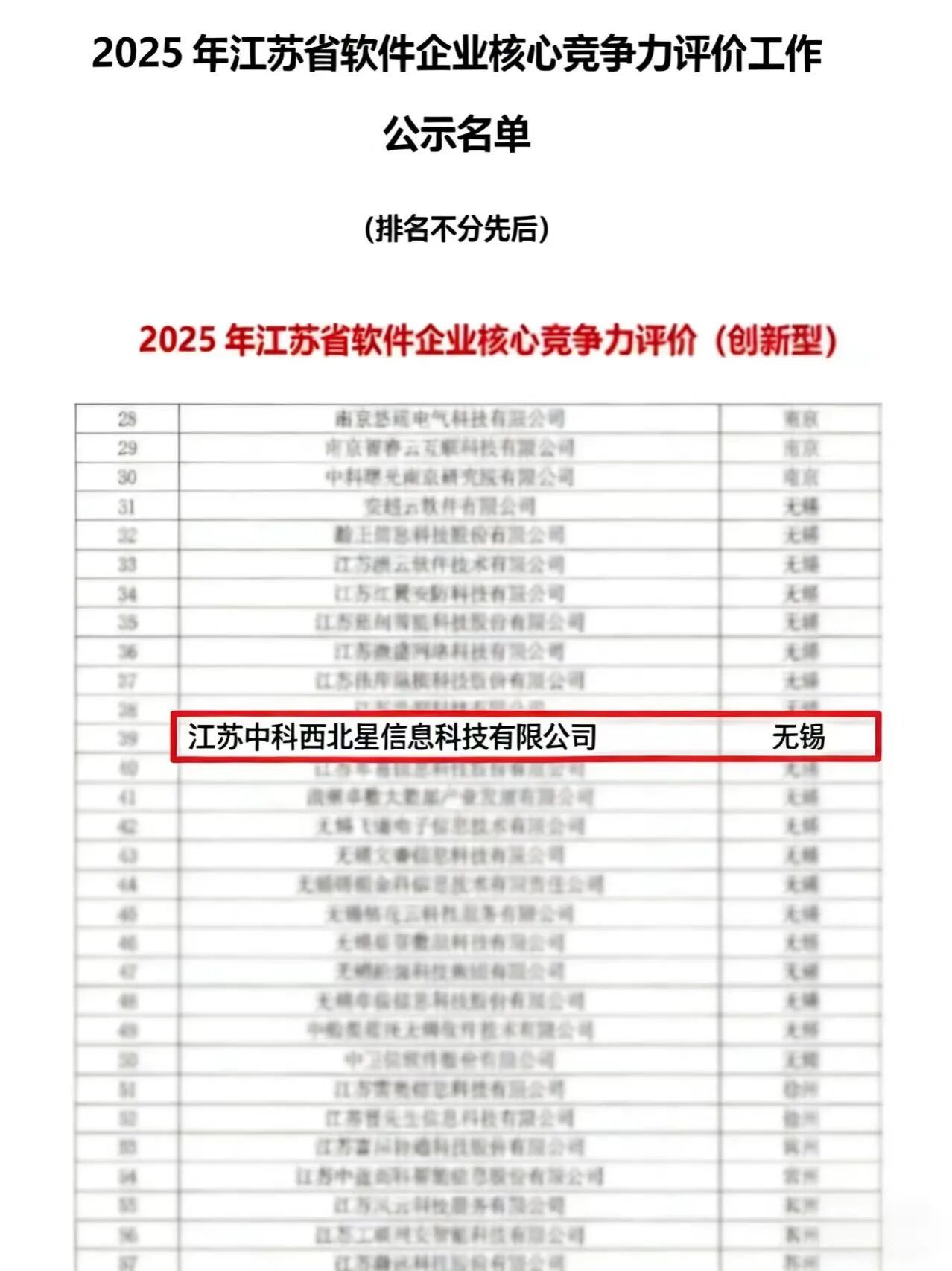 近日,从江苏省软件行业协会传来捷报,我校00级校友王蒙担任总经理的江苏中科西北星信息科技有限公司,凭借卓越的技术创新能力与突出的行业贡献,连续五年斩获“江苏省软件企业核心竞争力评价(创新型)企业”称号。